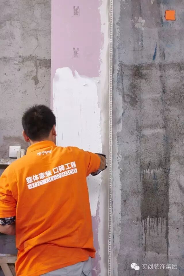 为了解决原墙面粉化造成的砂浆腻子粘合性低的问题,实创采用了墙体界面封闭工艺。界面剂具有很强的渗透性,能充分浸润基层表面,提高抹灰层与基层的吸附力,避免抹灰砂浆与基层黏结时产生空鼓,增加水泥砂浆对基层的黏结力,代替对基层的凿毛处理,避免抹灰层及面砖空鼓、脱落。