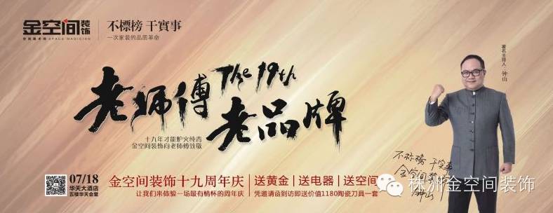 7月18至19日,湖南省最老牌的家装名企——金空间装饰将迎来19周年大庆!