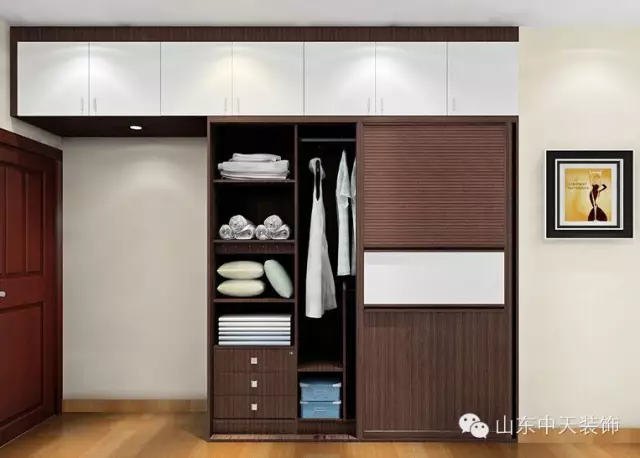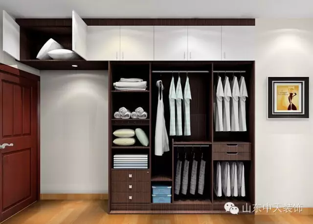 家里出现不美观的横梁怎么办,如何去装修设计呢?像这款突出的横梁的样板间,又怎么办呢?这时小尚建议你可以采用顶柜延伸的设计方式,不仅很好的消除横梁带给人压抑的感觉。并增加空间的收纳功能与装饰柜更整体统一。而衣柜设计的内部结构满足了衣物的悬挂与叠放需求。