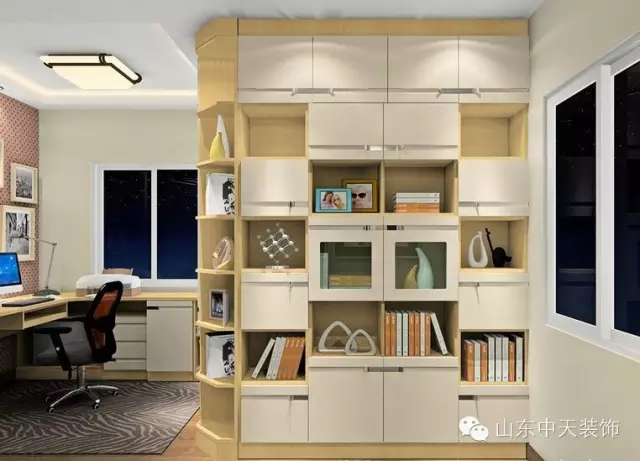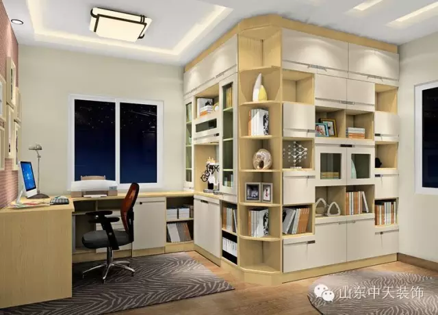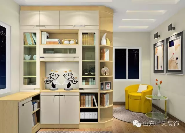 遇到难搞的鸡肋空间柱子,怎么装修会更好些呢?小尚把它设计成一间书房,采用开放式书柜,隐藏了柱体,还增强了收纳性,书柜到书桌的设计是一体式设计,从右到左采用一站式过渡,整体整洁大方,能够充分利用到每个角落,不遗漏任何一个小空间。