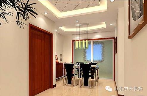 餐厅,整通的玻璃推拉门,把整个餐厅显的更加宽敞明亮,暖色的灯光,弧度的吊顶使人食欲大增。