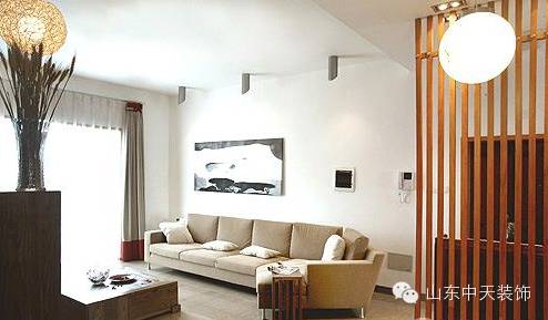 玄关:玄关处的处理,大胆采用木材代替屏风,使得客厅不致于一览无余。客厅的设计以追求简约为主题,墙上的装饰画作为点缀。