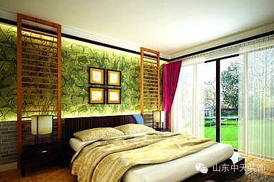 主卧室:背景壁纸与青砖饰面的造型错落结合,地面运用实木地板按传统席纹的方式拼贴,更显传统韵味。合理的色彩并不是想要表达的重点,赋予空间的古典和温暖以及在细节处体现出内涵,才是设计师要表达的愿望。