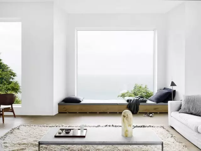 转角的窗户设置保证了室内明亮的空间感,规格不统一的窗框整齐划一,很是抢眼,转角的设计也符合整个景观窗的设置。