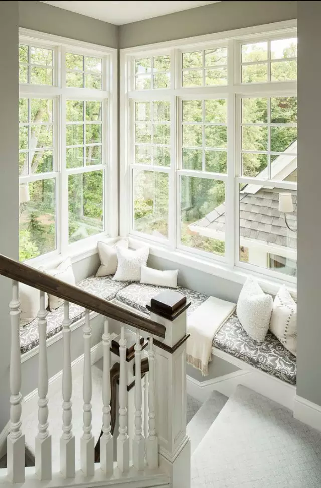 不过好像只有西方的飘窗喜欢作为很不错的观景台。躺在窗台上,上面放上两个靠垫,或坐或卧,白天看车水马龙,晚上看满天星斗。利用飘窗的另一方面是其充足的光照。