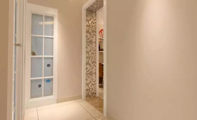 卫生间门彩艺玻璃点缀的处理带来了一抹小清新气息。门框处的花纹壁纸,是女主人的最爱呢~细节处也要有精致的装饰。