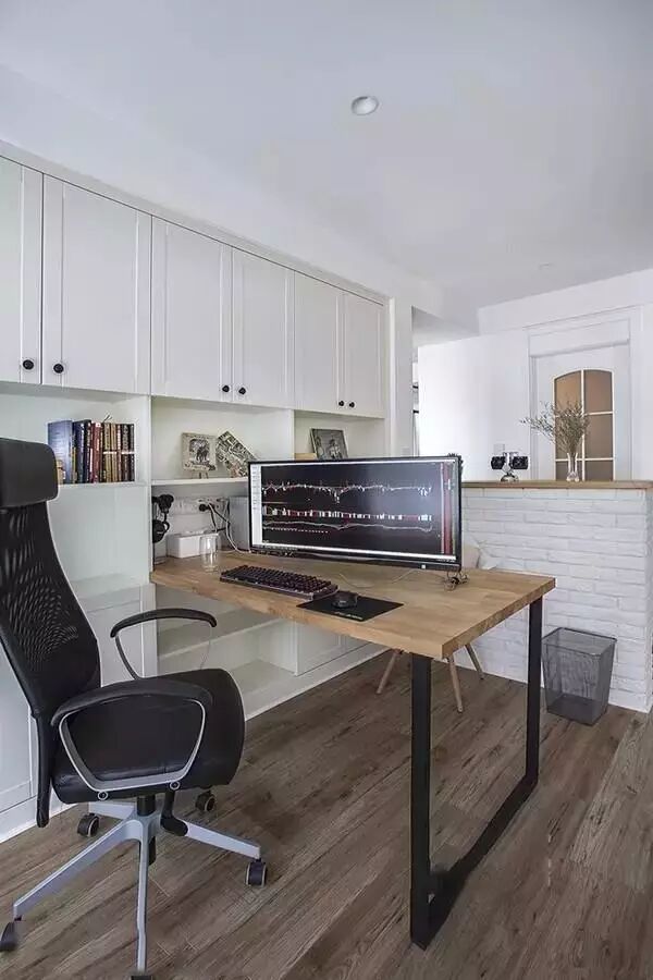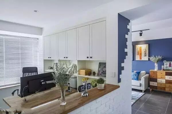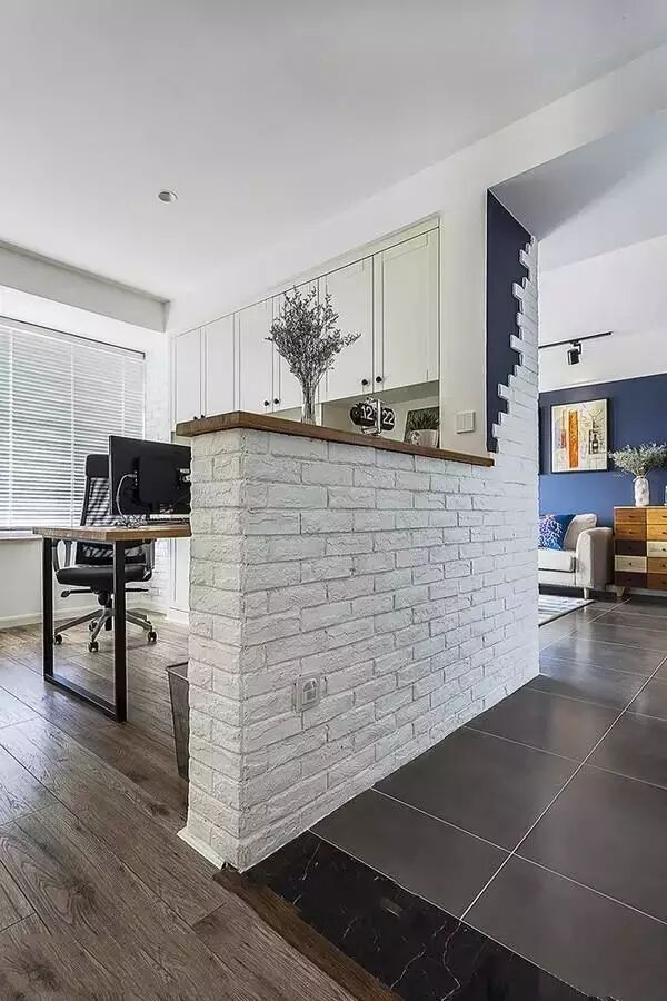 ▲半墙隔断书房,让书房更通透,也让走廊更明亮。