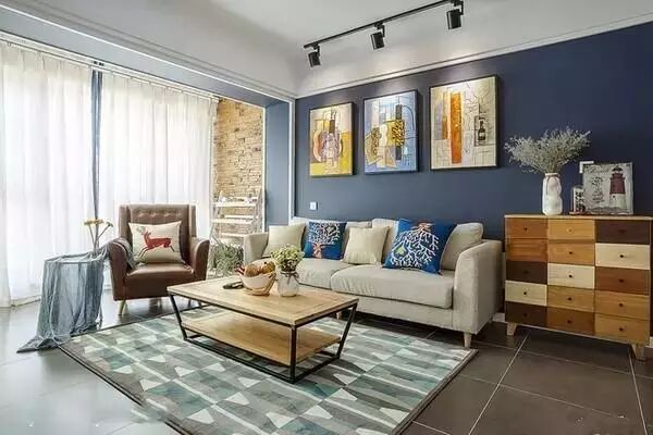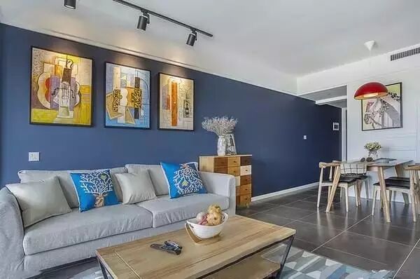 ▲客厅沐浴在阳光下,与深蓝色的墙壁相辉映,颇有几分“风轻云淡”的感觉。