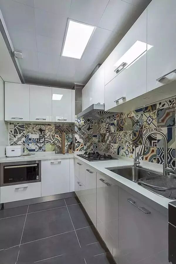 ▲白色的厨柜,用彩色的小花砖来平衡色调再好不过了,个性又耐脏。