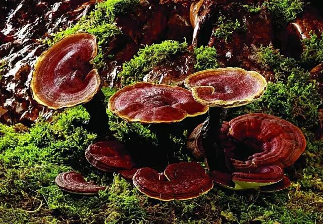灵芝性温味甘、益精气、强筋骨,有观赏作用,是长寿之兆,自古被视为祥物,鹿口或鹤嘴衔灵芝祝寿,是吉祥图的常见题材。