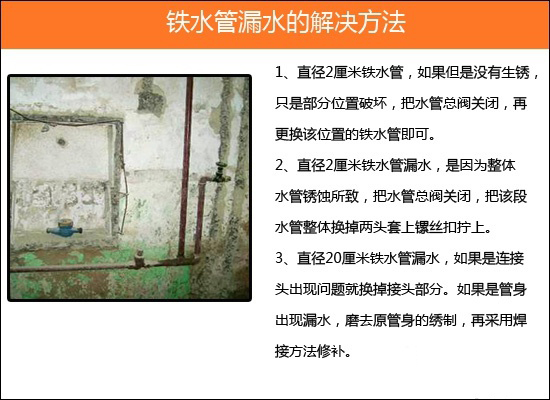 2、铁水管漏水:根据水管的口径不同,解决的方法也有所不同。