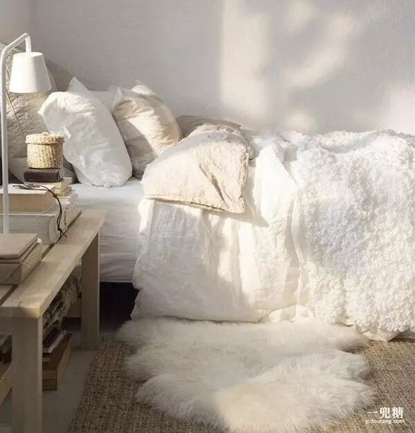 沙发毯!一定要!无论大床小床,一两张沙发毯真的会让床铺的舒适度得到大提升,而且会营造出懒散的效果,让你一接近犯困指数就上升。但记得哦,千万要选择质地柔软亲肤的,最好是毛线针织、比较温暖的那种。试想一下,裹着这样一张薄毯在床上听歌看书,冬天再冷都不怕了。
