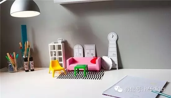 编辑点评:小小的一套“家具”真的是可爱至极!无论桌椅还是橱柜都做得有木有样,甚至煞有介事地铺了张“地毯”给儿童房增添了几分童趣!