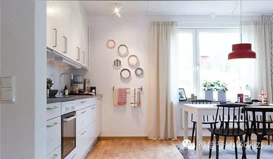 编辑点评:几个圆形盘子,当它们被贴到墙壁上的时候,已然不仅仅是盘子这么简单了,简单的花纹是对这面墙壁最好的装饰,同时告诉人们:这里是厨房重地。