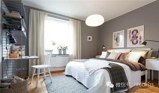 编辑点评:地毯采用了与墙壁一致的灰色,在颜色上与之靠近。软和的地毯给人给人带来温暖舒适之感,在下床的那一刻可以避免赤脚直接与冰凉的地板接触。