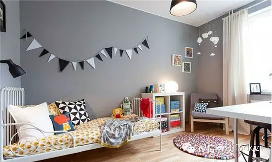 编辑点评:在孩子们的房间里,以灰色的墙壁装饰和丰富多彩的扑克牌工艺品作细节摆设。避免了过于刻板和严酷的几何形式。