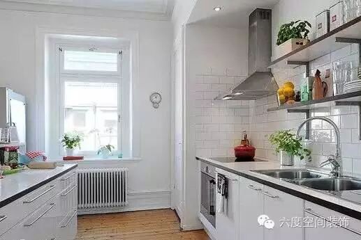时尚而追求简洁的人来说,北欧风格的家装是再合适不过了,它以简洁著称,室内的顶、墙、地六个面,不用纹样和图案装饰,只用线条、色块来区分点缀。家具讲求实用性与功能性,设计以人为本。同样北欧风的厨房也是非常简洁干净的。