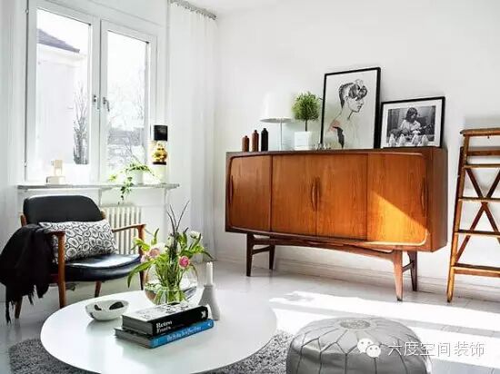 小编点评:一款既复古又带有地方民族风格的摆柜出现在客厅设计中,体现了对传统别样的尊重,原木的暗黄色在灰白空间中非常抢眼,既简约又洋溢着艺术气息。