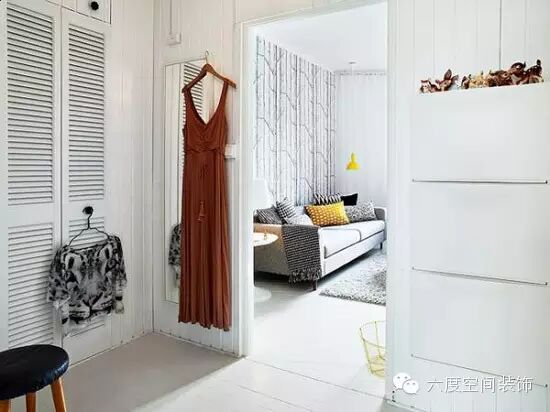 小编点评:在客厅与卧室之间的缓冲区,别出心裁地营造了一个衣帽间,高大的玻璃镜,随手可得的衣物挂,绝对是爱美女主人的挚爱。