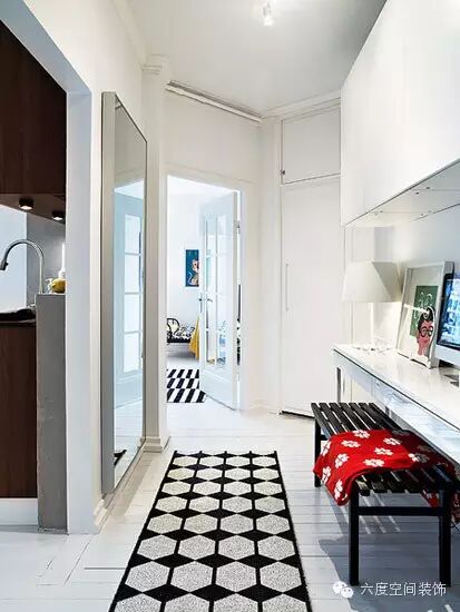 小编点评:一桌一椅一镜一地毯,走廊就是一个休憩小间,也是一个文艺小空间,透亮的桌台,或许可以是一个真心不错的书桌。