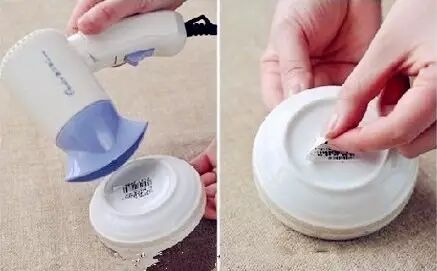 方法一:用吹风机对着标签的位置吹,很容易就揭掉了,但对于劣质的胶条效果相对差。方法二:用白醋浸湿洗碗布,把浸了醋的洗碗布盖在标签上,大约20分钟,最后用洗碗布反复擦贴有标签的位置,直到标签完全剥落。