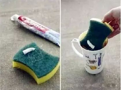 茶垢很难除?挤点牙膏到清洁海绵上,利用牙膏里的摩擦微粒轻松去除!