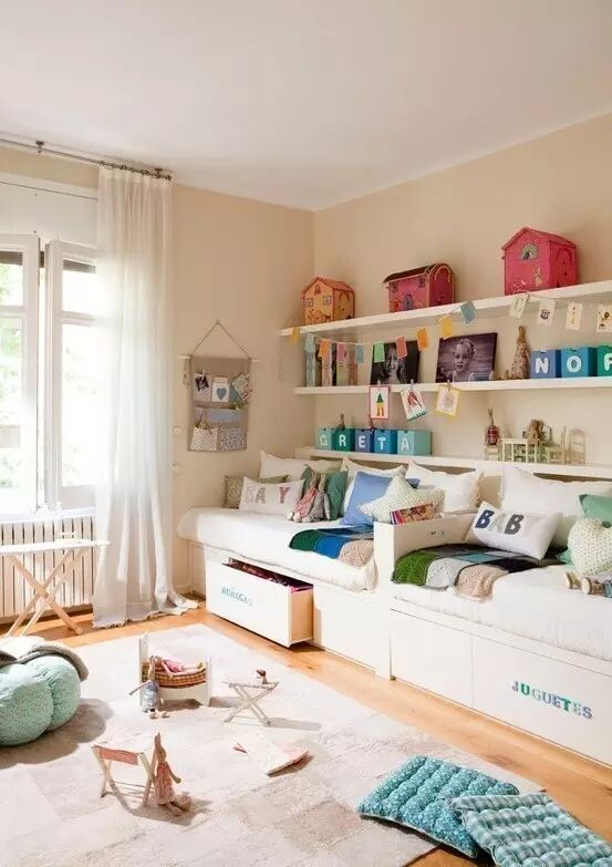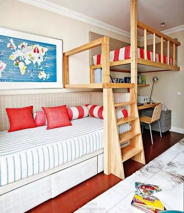 许多妈妈都有生二胎的宝贝计划,可往往增加一个儿童房有现实上的困难,不妨将儿童房改造成可以容纳2个宝宝自由成长的房间吧。