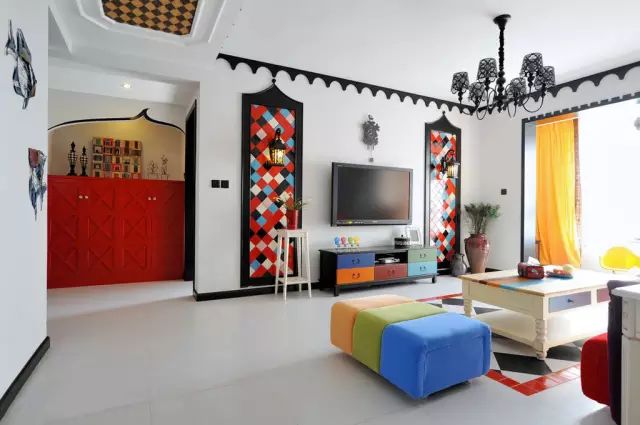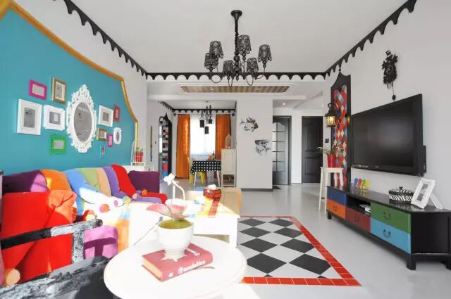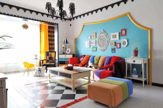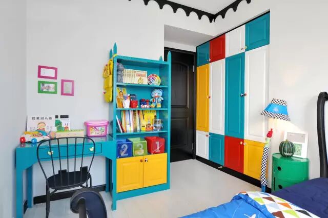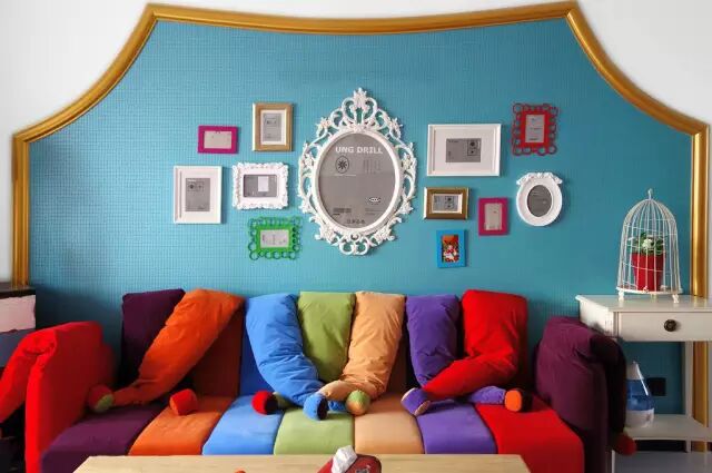 ▲彩色的柜子与沙发相呼应,打造童话般的氛围。
