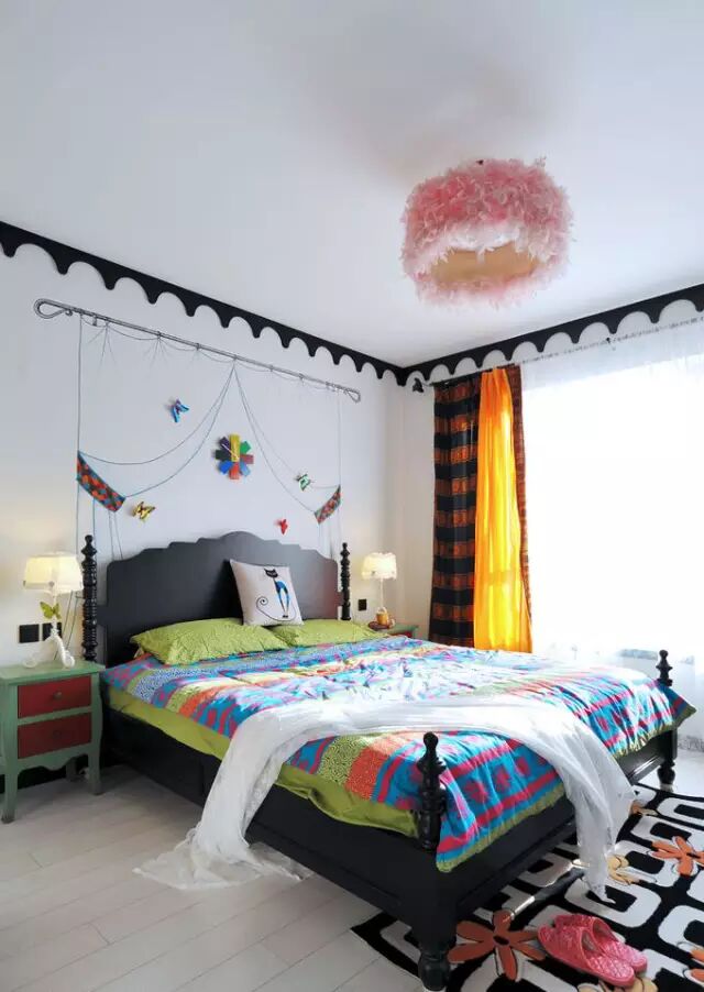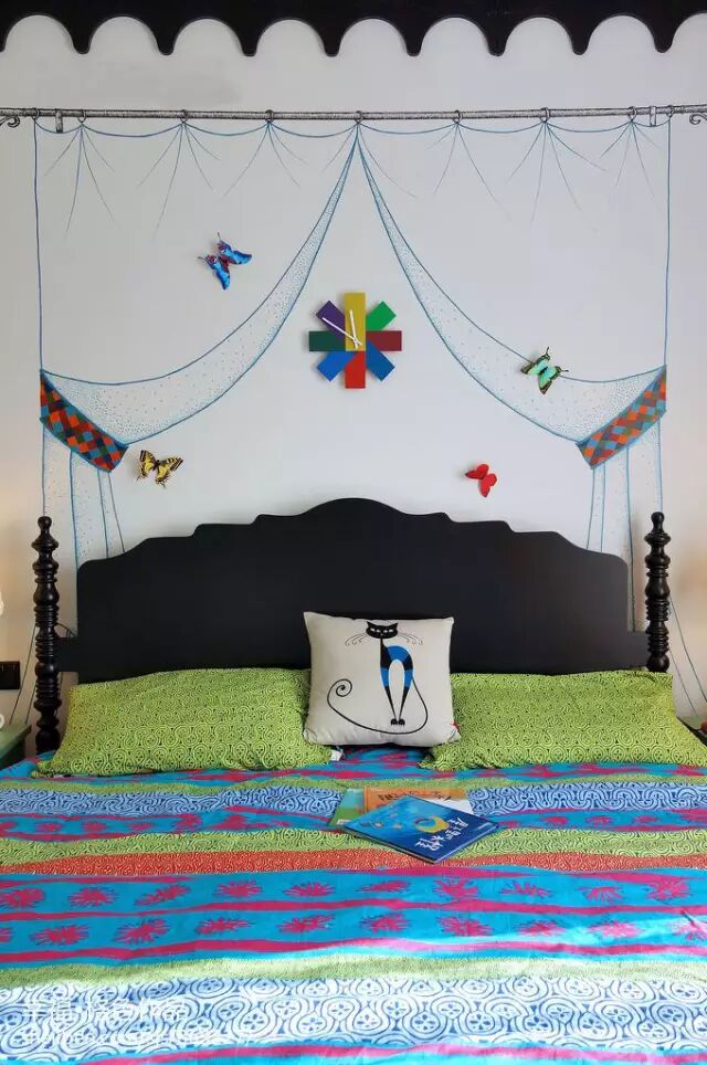 ▲梦幻的卧室,有家具的浓墨重彩,也有彩蝶翩翩。