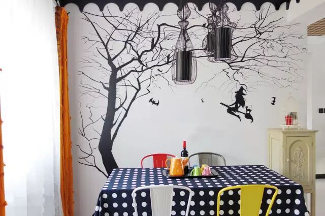 ▲骑着扫把的女巫奔驰在墙壁上,为餐厅注入活力。