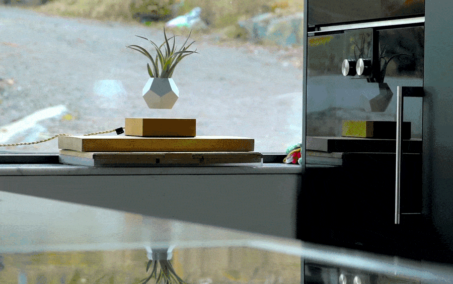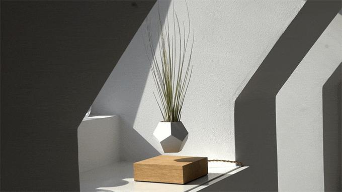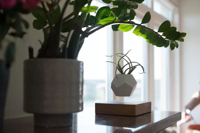 通过特质的特殊形状磁石,将花盆乃至植物稳稳的悬浮于空气中,优雅至极。