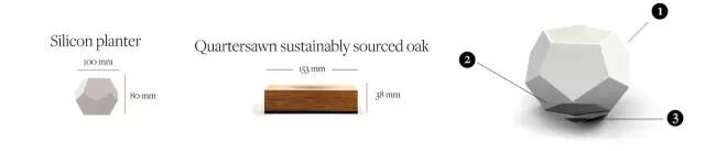 整套套装拥有一个橡木制的通电电磁底座以及一个12面网格状硅胶花盆。