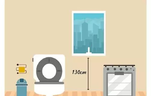卫生间是非常隐私并且需要采光较好的地方,所以卫生间的窗台高130厘米-150厘米左右,窗扇上悬,这样窗户不但可以长开通风,也可以保护私密性。
