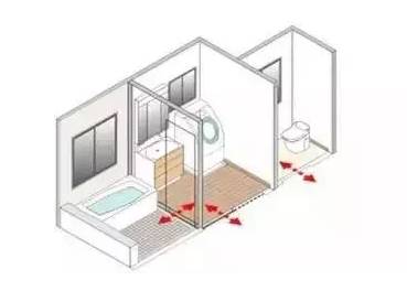 或是如下图的布局,洗手间作为浴室和卫生间的过渡,能够从两个方向进入。