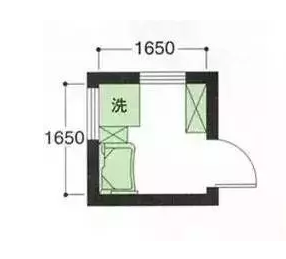 1. 最小尺寸的布局方式,能容纳一个800左右的洗面台、收纳柜以及洗衣机。