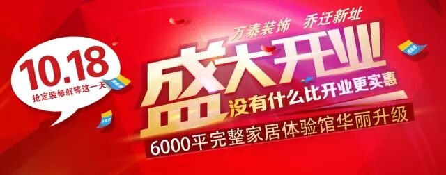 万泰在鲁中发展12年里每一步的成长都备受行业瞩目,今天万泰将引领装修行业迈向一个新的发展。成功的开始,激励万泰装饰信心十足迈向更加美好的未来。万泰公司定于10月18日盛大开业!