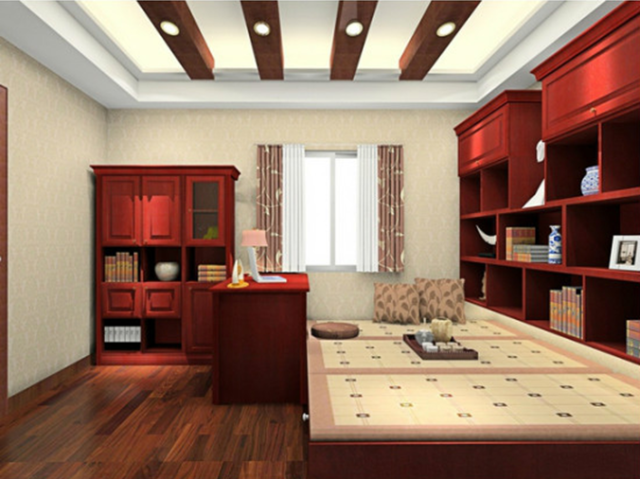 在不大的小书房里,一定要采用床、书桌和榻榻米相结合的设计,很好地节省了空间,并增加书房的储藏功能。