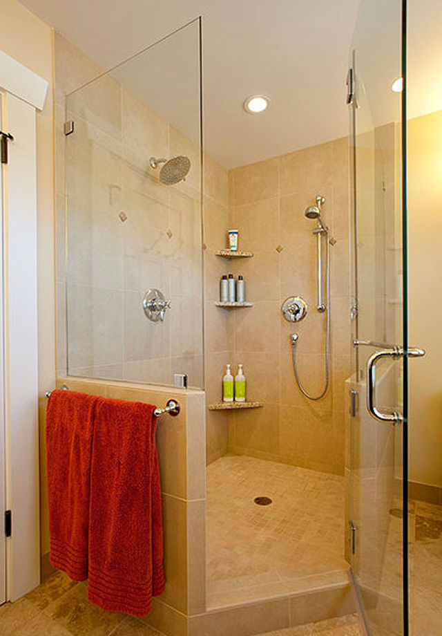 一些讨喜的小设计,一直为家人提供着大大的便利,如淋浴间的搁架设计,让洗护用品用了一席之地,按类整齐排放之上,给正在小间里沐浴的你提供便利,而墙角圆弧搁架,则是最不占空间的设计。