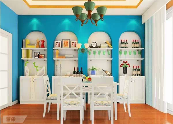 摆脱单调的餐边柜,蓝色拱门的韩式田园风餐厅,满满的都是浪漫。