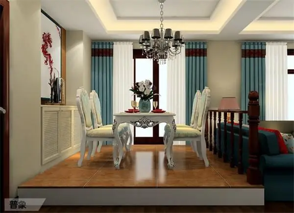 用栏杆隔开的餐厅区,好像隔出了一个独立的浪漫空间。