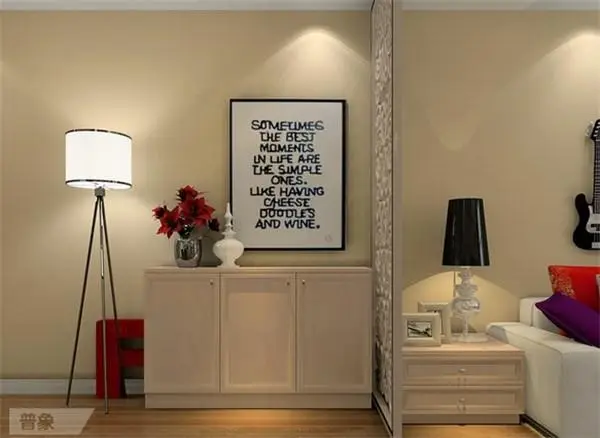 矮柜、屏风和落地灯巧妙搭配,烘托出客厅里的浪漫气氛。
