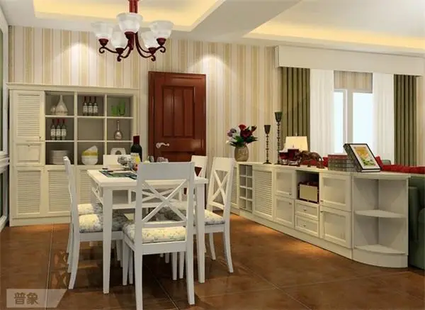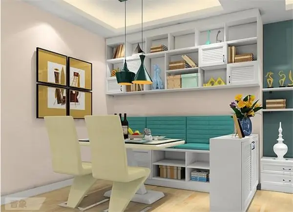 小餐厅的墙面怎样才不单调?内嵌式的装饰柜别有一番情调。
