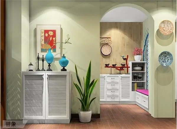 由小拱门将玄关和客厅隔开,给人别有洞天的空间体验。