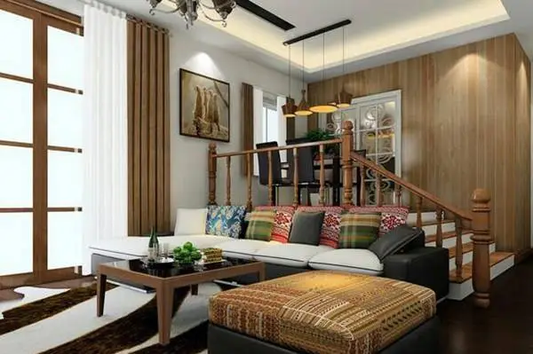 客厅比较宽敞,沙发后面的位置不想空着,又不想摆放笨重的储物柜,可以用梯台营造一个小区域,让空间更有层次感。