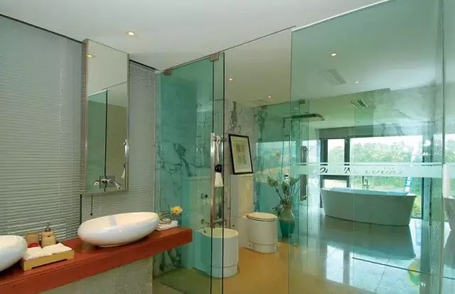 一些年轻的小夫妻刚结婚,喜欢把主卧房里的洗手间改成玻璃套厕,认为这样可以增加情趣。对于这一格局,虽然这种设计一些年轻人可以接受,但是从风水的角度来讲同样不宜,因为厕所无论怎样都是一个有煞气的地方,属阴,应该隐蔽起来,所以要用实墙,而不是用通透的玻璃墙。
