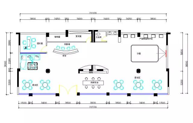 项目说明:此项目为地产销售中心,内部按功能划分区域,有前台、洽谈区、签约室、沙盘、休闲区、模型展示区。