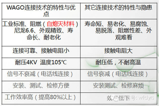 电:东易日盛在导线连接问题上大胆革新,率先引入先进的导线连接端子,杜绝明火作业、根治接线隐患。选用原装进口德国WAGO电线连接器,独有的插线式弹簧夹操作简便,电线连接后稳定牢固、不易脱落。(跟其它连接端子做对比)WAGO电线连接器的优点:1.涂塑金属电线管:在原施工方法/验收标准不变的情况下增强了耐腐蚀性,且导电性能符合标准要求;2.非常环保:环氧树脂涂塑层具有优异的阻燃性能,且无溶剂、无挥发,即使燃烧后也不会产生有害气体及异味。