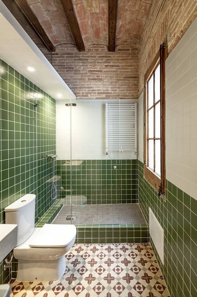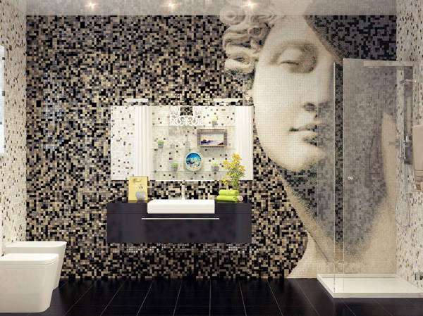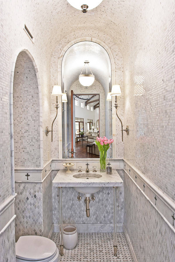 单色瓷砖搭配花色腰线,大多数人会觉得这种搭配过于老套。所以瓷砖拼贴就渐渐带领了风潮。