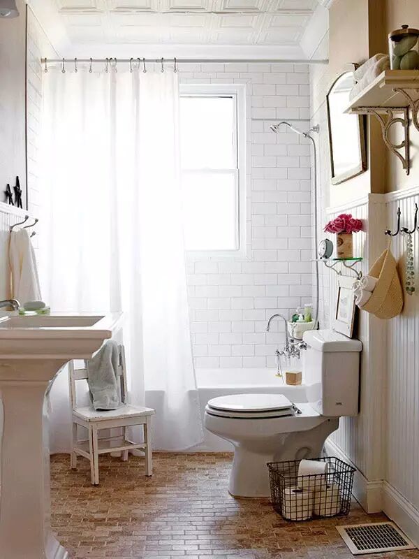 简简单单的小吊灯,安置在浴室中,简单实用。在浴缸周围围上帘子,可防止沐浴时水溅到四周。