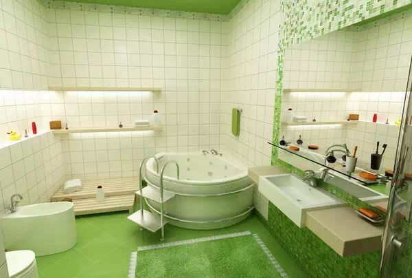 大面积的绿色,在这感觉就像在茫茫的草原上沐浴,空气也清新了。小编个人很喜欢浴缸有楼梯的这个设计,感觉萌萌哒。